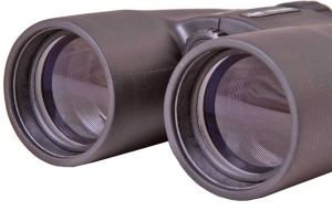 Корпус бинокля обрезинен. Он полностью защищает оптические элементы от случайных ударов и падений. Защитные крышки надежно крепятся к объективам кольцами – так вы их не потеряете даже случайно. Бинокль имеет стандартное крепление на штатив и подходит для стационарных наблюдений.