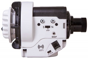 Внутри монтировки установлен модуль Wi-Fi, поэтому к ней можно подключаться дистанционно при помощи смартфона или планшета. Управление осуществляется из приложения Star Adventurer mini Console, которое можно бесплатно скачать для iOS и Android. Удобно, что проведя настройку в приложении, необязательно продолжать использовать Wi-Fi. Даже при отключенной сети монтировка будет помнить все введенные корректировки и использовать их во время работы. Также можно выбрать один из предустановленных режимов.
